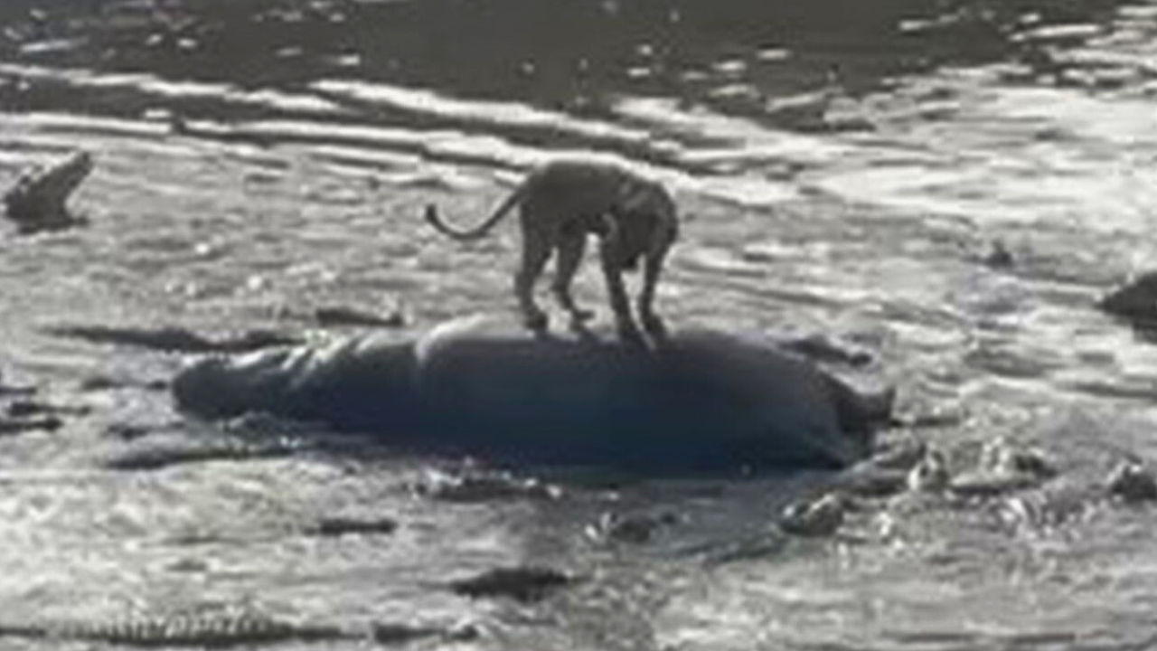 Antony Pesi was on a game drive in the Masai Mara National Reserve, Kenya, when he spotted the giant carcass floating in a river surrounded by hungry predators.