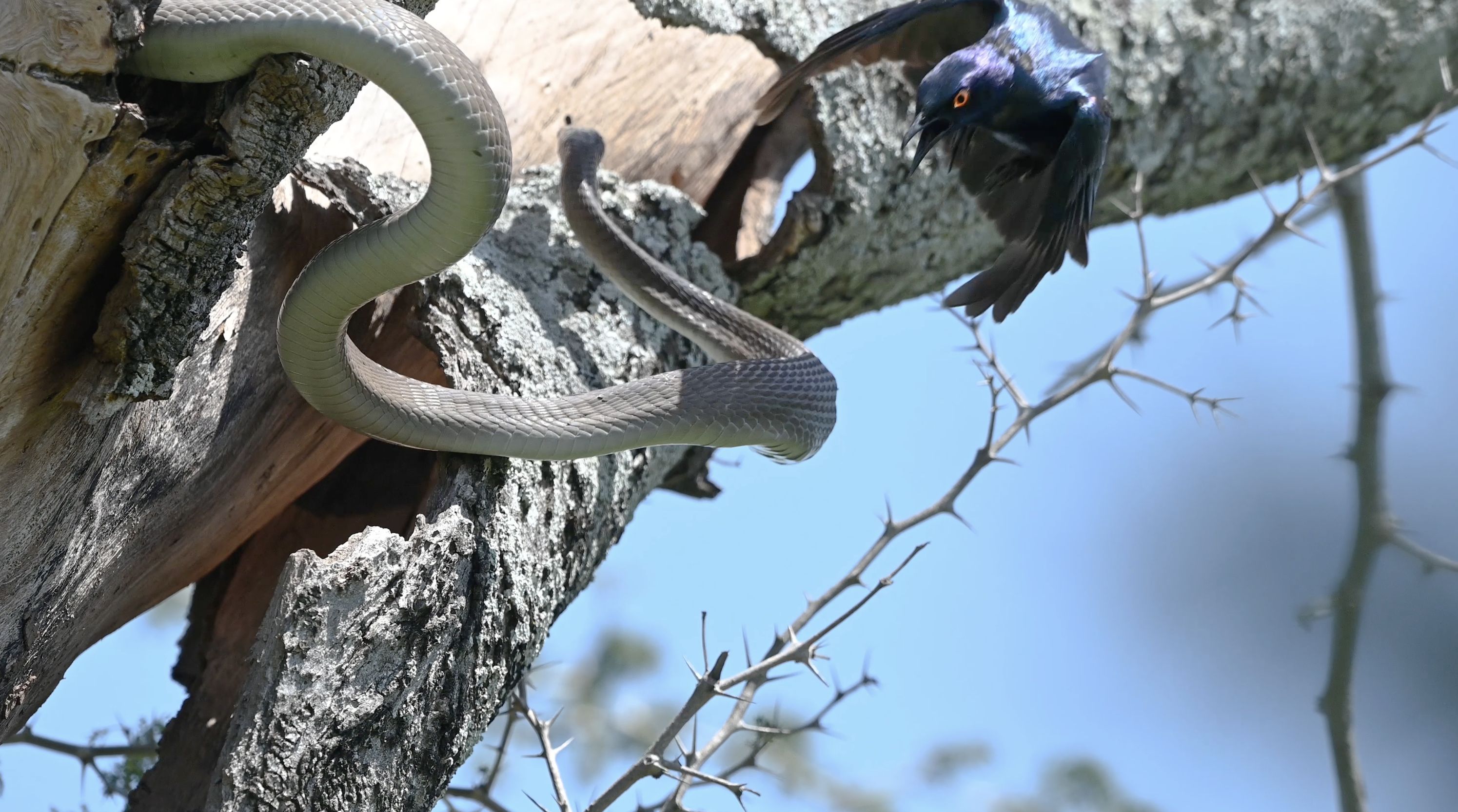 BRAVE BIRD PARENTS DIVEBOMB DEADLY BLACK MAMBA TO DEFEND NEST FROM ATTACK